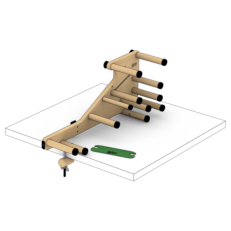 - Table clamp for added stability during warping or weaving.